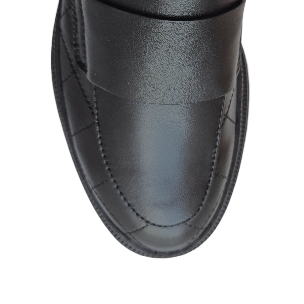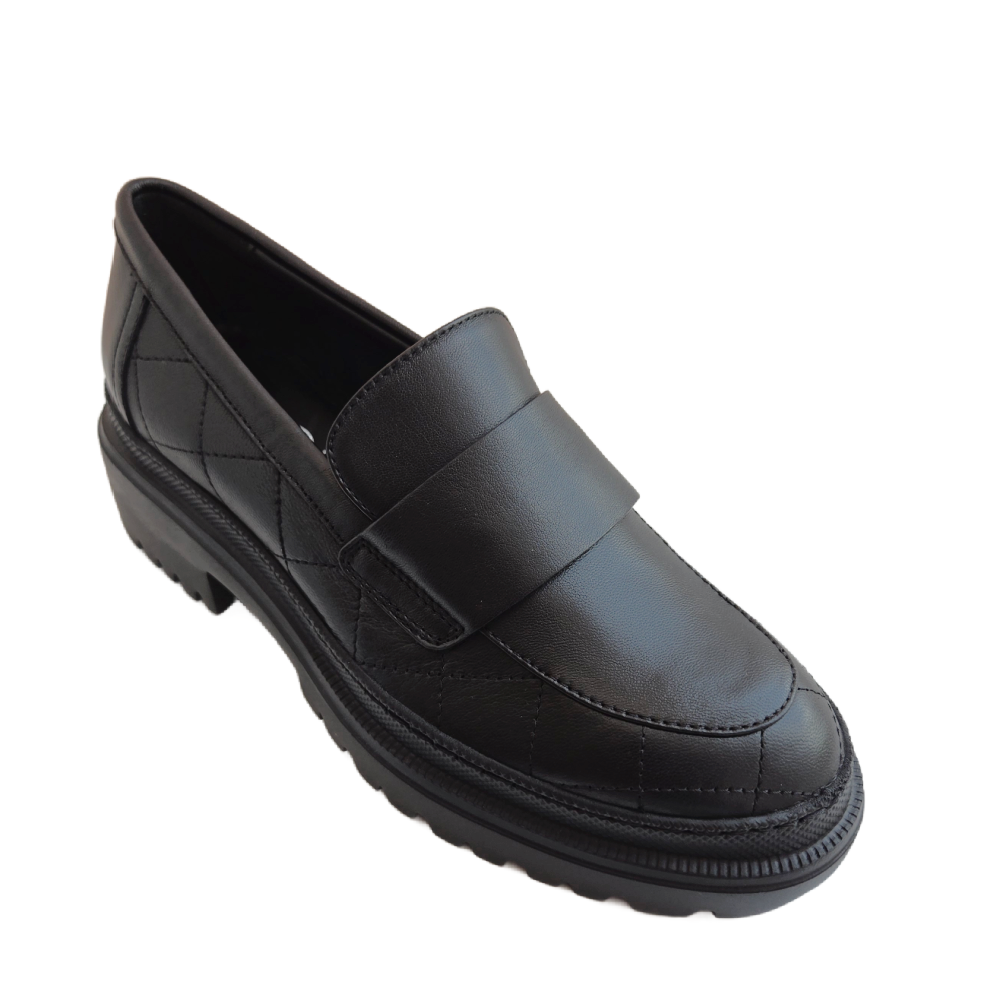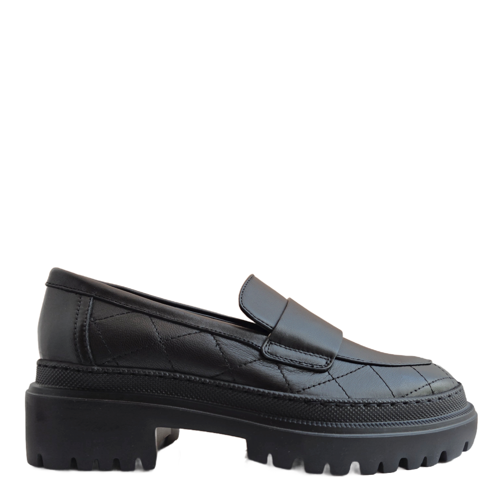 The MARY LOAFER features a quilted finish soft leather. Details give a feminine look to a shoe inspired by traditional men's footwear.