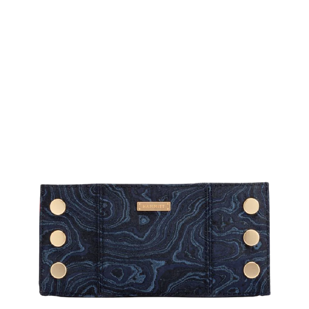 You can't cruise through DTLA without the 110 North. That's why we named our essential folding wallet after LA's fan-favorite freeway. This organizer's dream features 10 credit card slots, a clear ID pocket, zippered pocket and two drop pockets to hold cash. Cha-ching. An homage to our fan favorite pacific collection, this satin print hails from Spain and includes an abstract pattern, swirling tones of navy to achieve an elevated look that's not to be missed.