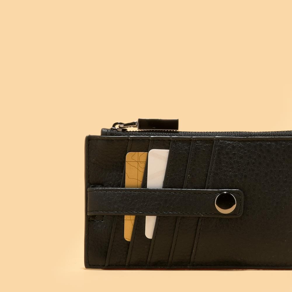 Your schedule is booked. That's why we've created one essential wallet that conquers every calendar entry. Stash credit and transit cards in up to 8 secure slots, and store meter change in one zippered pocket. Plus, enjoy a clear ID slot when that cute bouncer asks for a peek at your license.