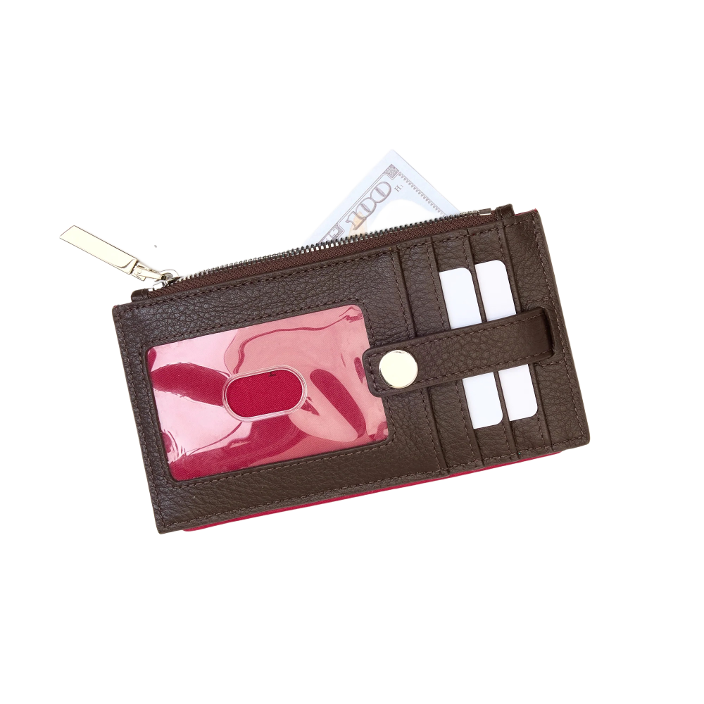 Your schedule is booked. That's why we've created one essential wallet that conquers every calendar entry. Stash credit and transit cards in up to 8 secure slots, and store meter change in one zippered pocket. Plus, enjoy a transparent ID slot when that cute bouncer asks for a peek at your license.