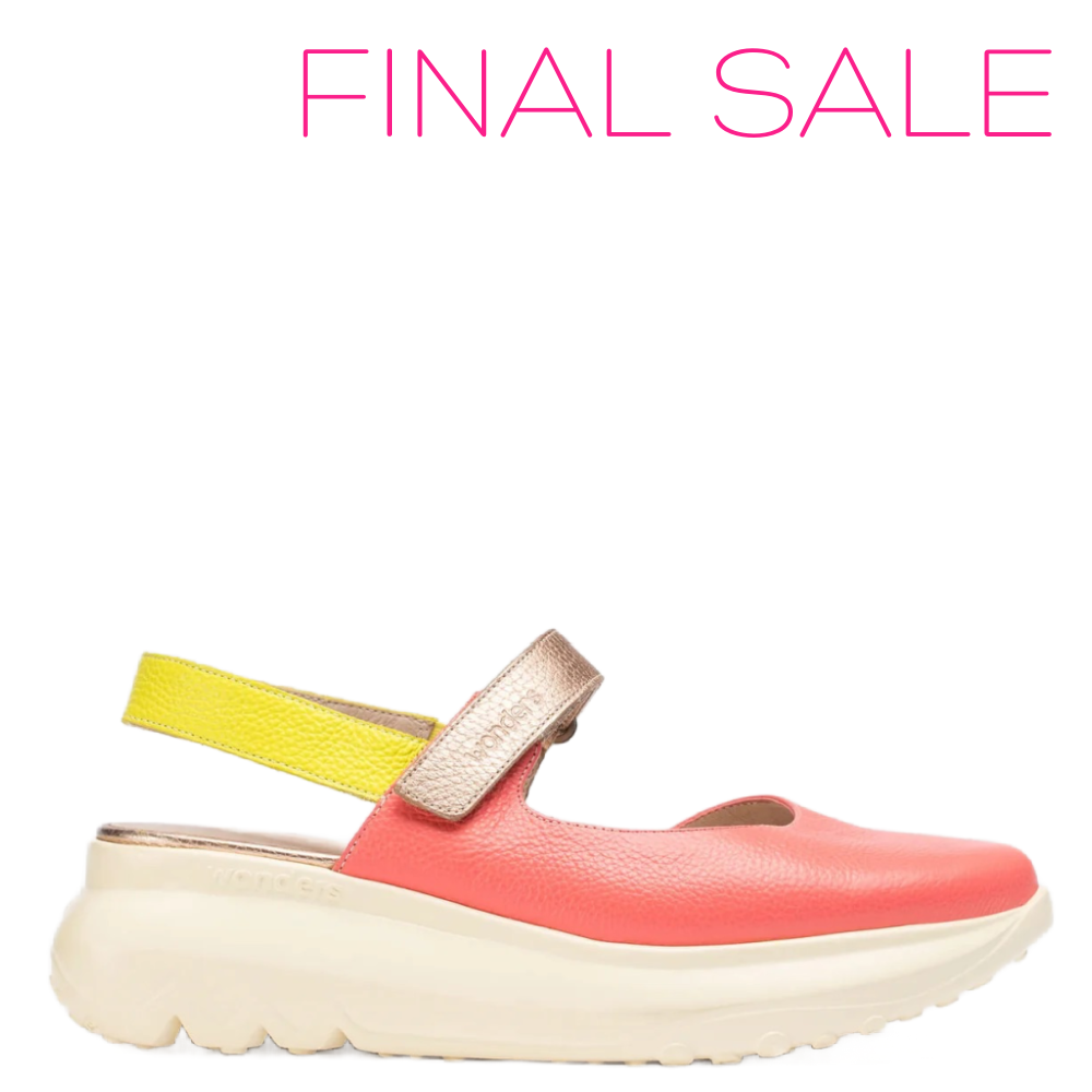 Elevate your summer style with the A-4004 Zaire by Wonders, a vibrant ladies' slingback shoe crafted with genuine leather uppers. This stylish addition to your wardrobe features a supportive ankle strap with an elasticated panel and an overfoot strap with a velcro fastening, ensuring an adjustable and secure fit. Designed with WondersFly technology for a lightweight and comfortable experience, and equipped with removable MemoryGel insoles for maximum support while walking, this shoe seamlessly combines style and functionality. The wedge heel adds height without compromising on comfort, making it perfect for a variety of looks this season.