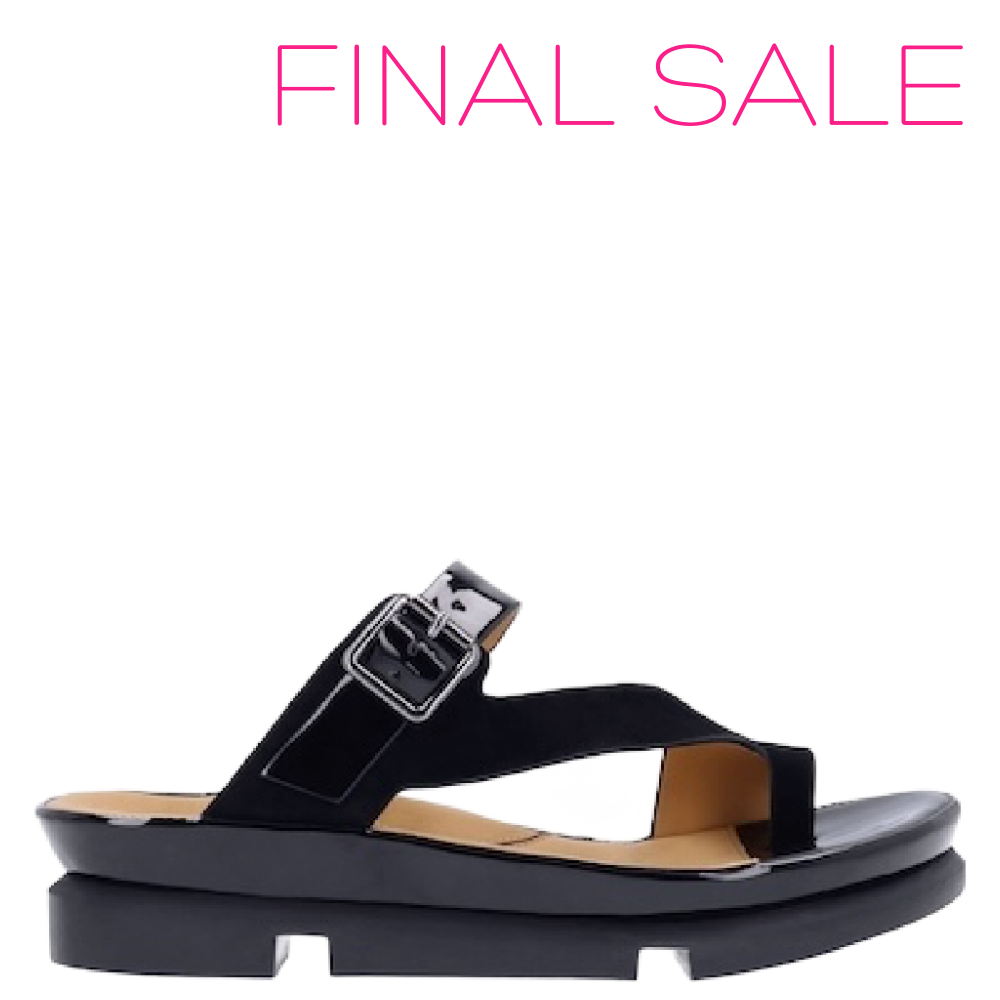 This leather sandal has a round toe, memory foam insole, leather lining and synthetic outsole. This style also features a buckle closure on a 1.75 inch heel.