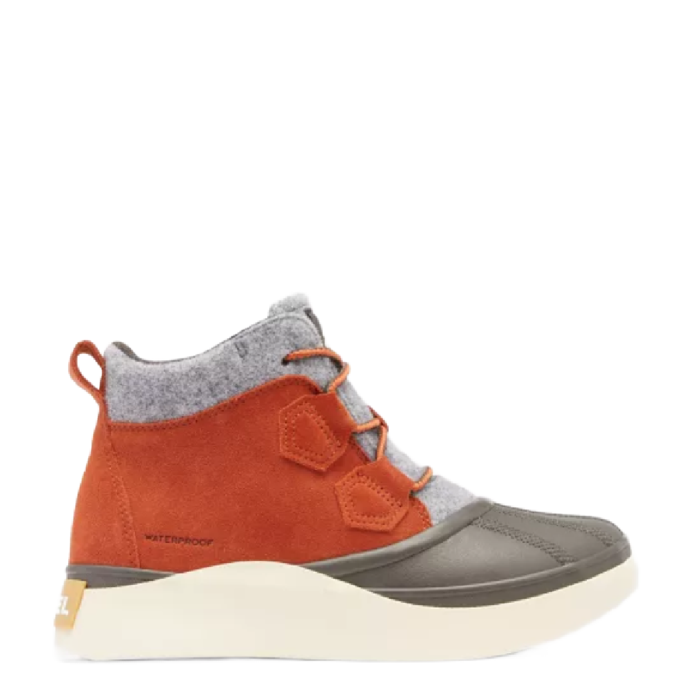 - UPPER: Available in waterproof full grain leather and suede upper or waterproof felt and suede upper. Heel pull tab. Lace closure. Textile lining. Waterproof bootie construction. Waterproof vulcanized rubber shell. Laces are not waterproof.