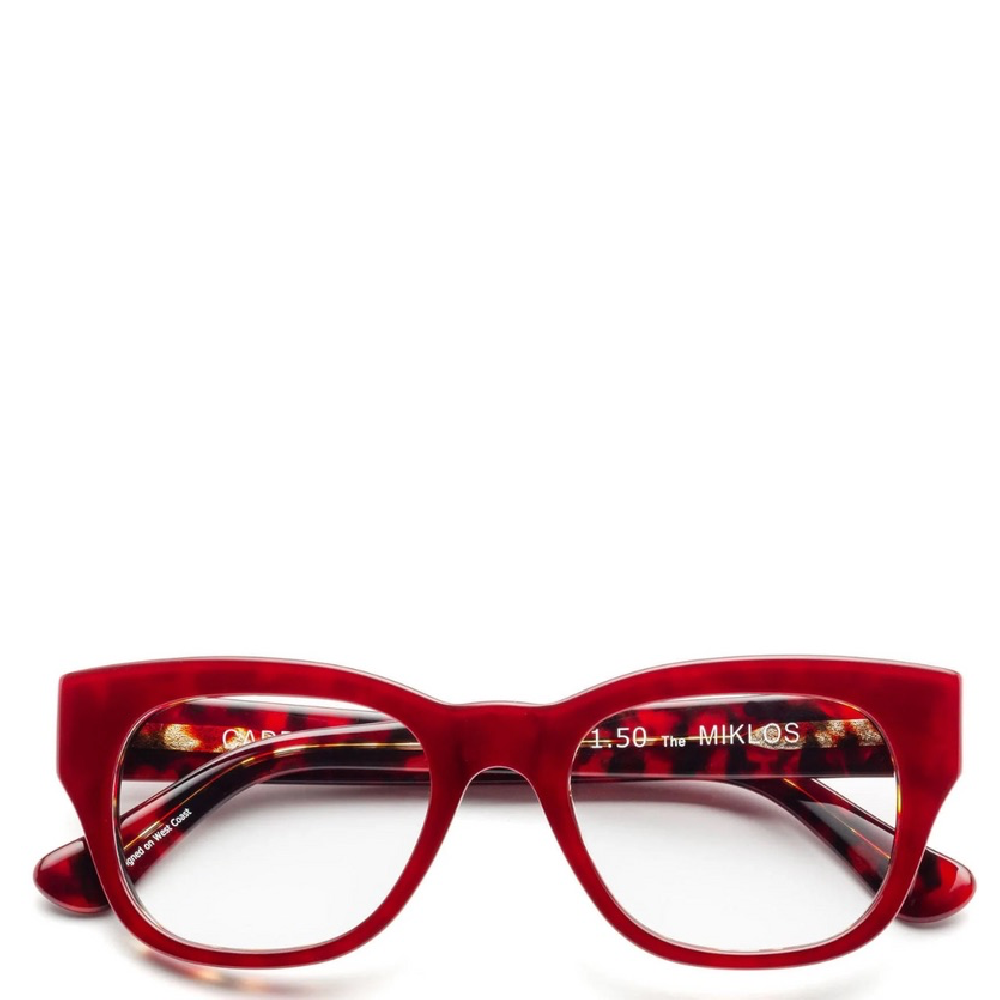 The ideal reading glasses in a stunning and versatile deep red, tortoise design! Featuring a thick frame engraved with "Port" and "Starboard", a blue light filter that also reduces smudging and glare, and sturdy 5-barrel hinges for ensured security and trendy style.
