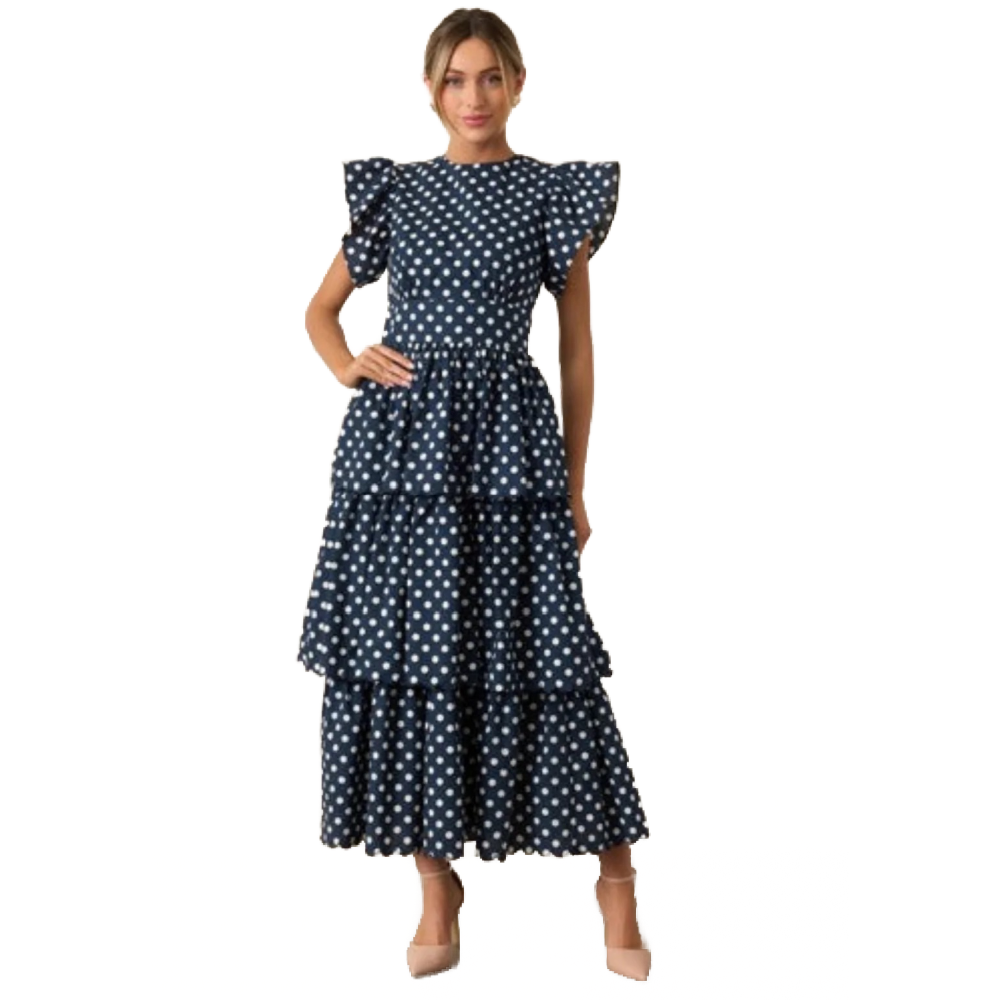 The Chelsea Maxi Dress in Navy Polka Dot offers a timeless silhouette with a modern twist. Crafted for comfort and style, its flowing maxi length and classic polka dot pattern create an elegant yet approachable look.