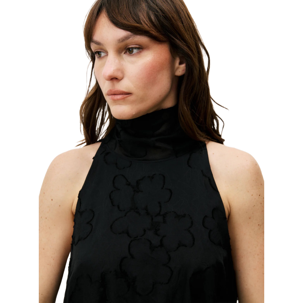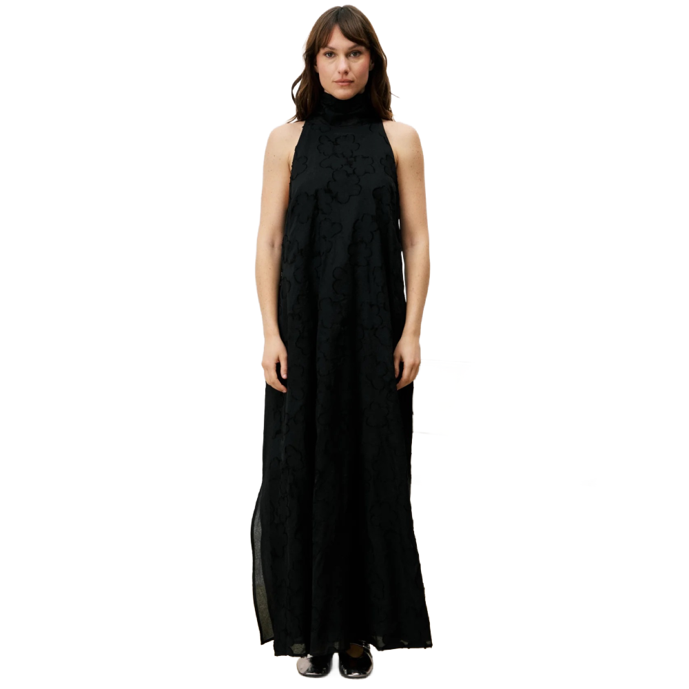 • Long sleeveless dress with voluminous skirt