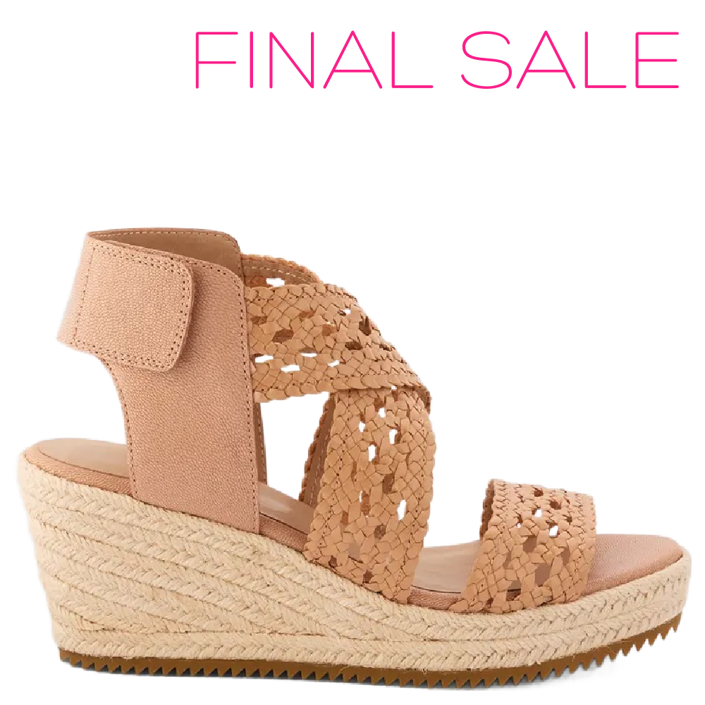 • Eileen Fisher "Willow" woven and tumbled leather espadrille sandals are the perfect match for spring; elegant and flattering for all.