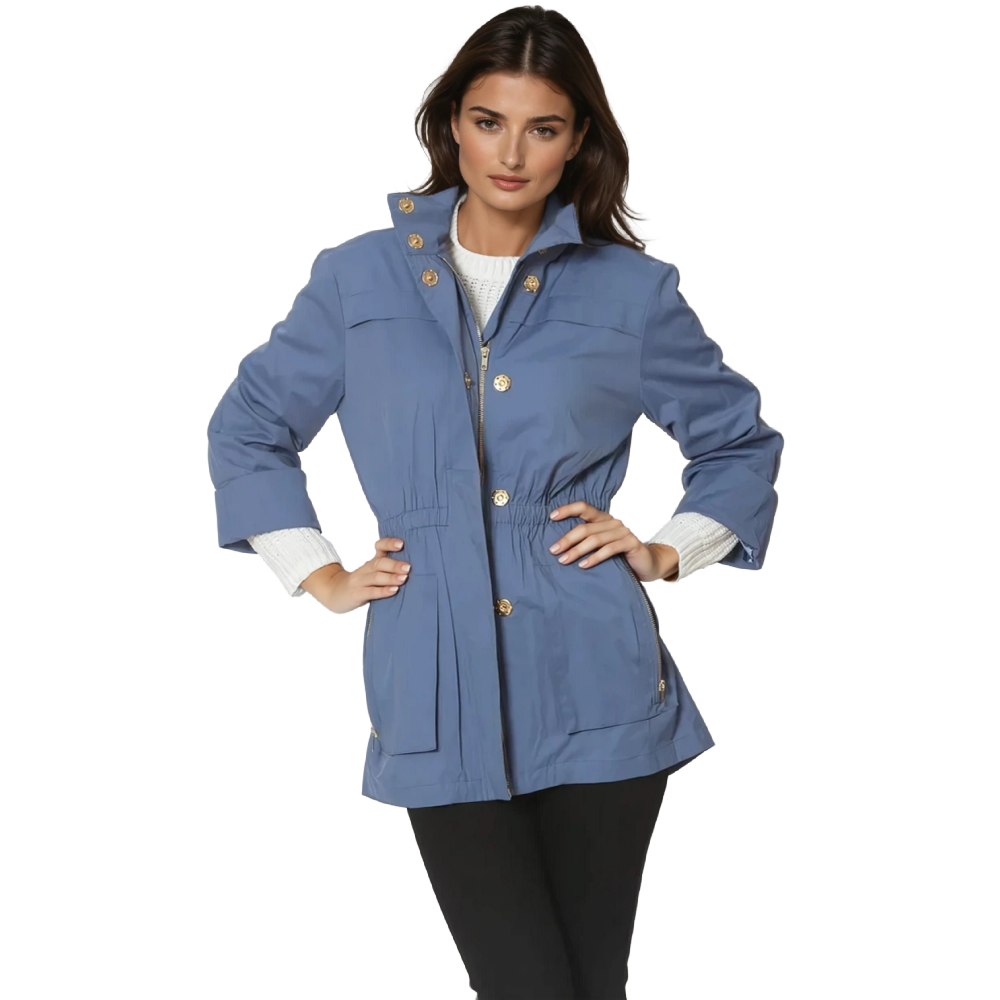 ANNA - new fabric developed by Ciao Milano. Soft durable flowing fabric that is not only 100% water proof but extremely rich looking. Looks like a million dollars. Same style, hardware, specs and fit with zip in pouch hood as the famous TESS style.