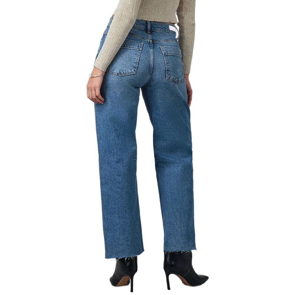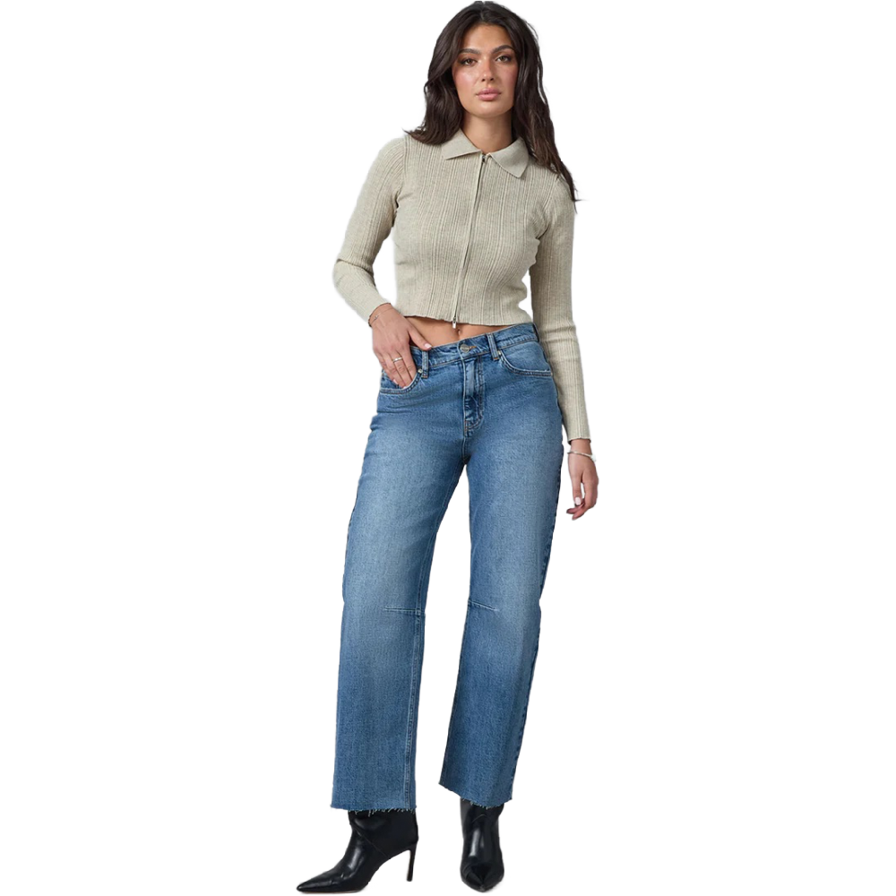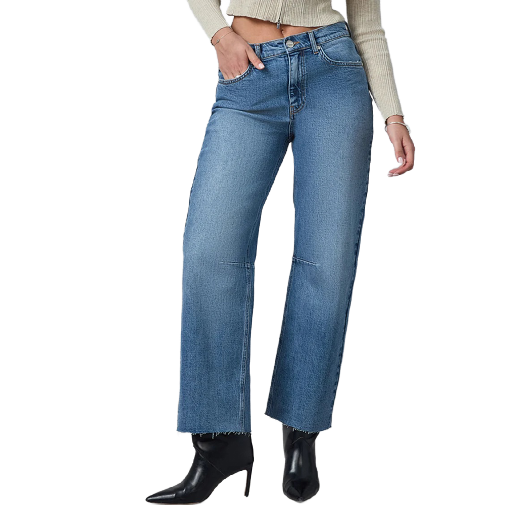 The DYLAN High Rise Barrel Jean redefines casual cool with its relaxed, curved-leg silhouette. A high waist keeps it flattering, while the barrel shape adds to the modern edge. The Dylan features 5 pocket styling and comes in a medium blue wash.