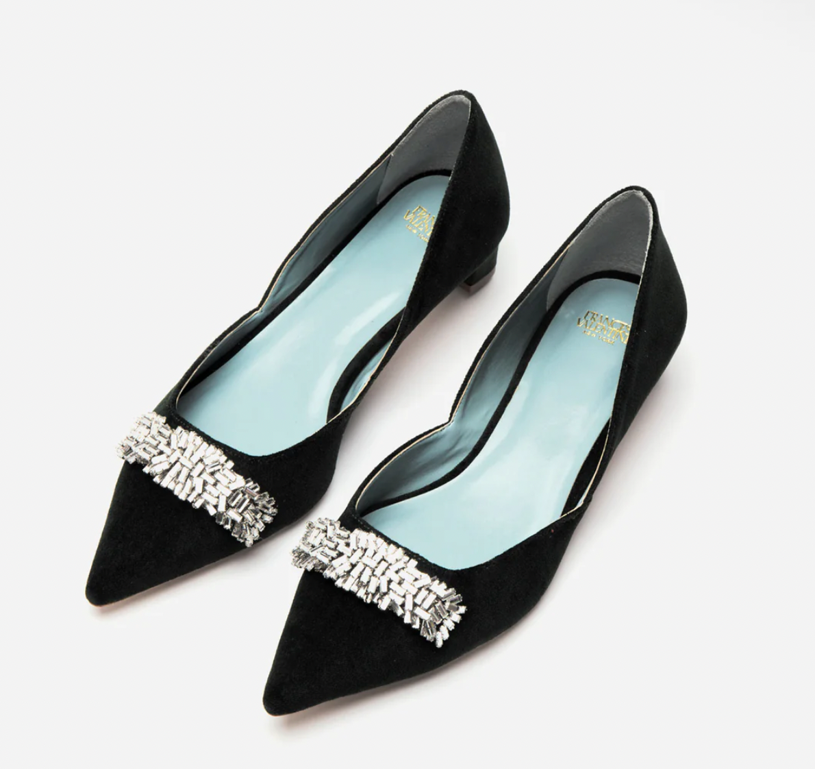 Paula is our sleek, pointed-toe d'Orsay pump – accentuating your arches with side cutouts on a mini, covered block heel design. This plush velvet shoe is adorned with gemstones for a little extra shimmer in your formal looks.