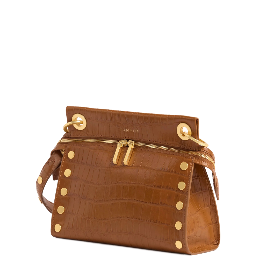 - Crafted with a warm brown Italian leather with a tumbled crocco embossing