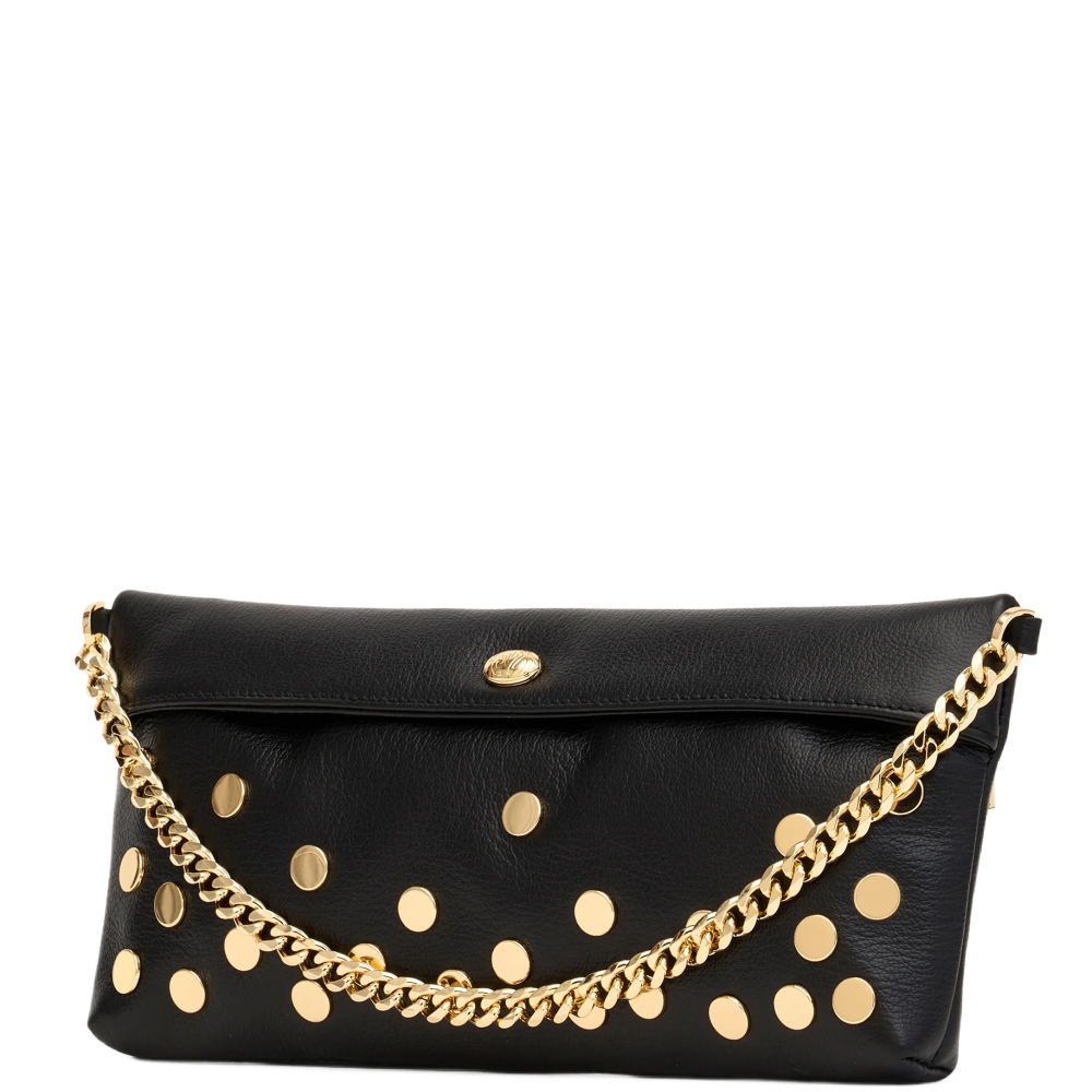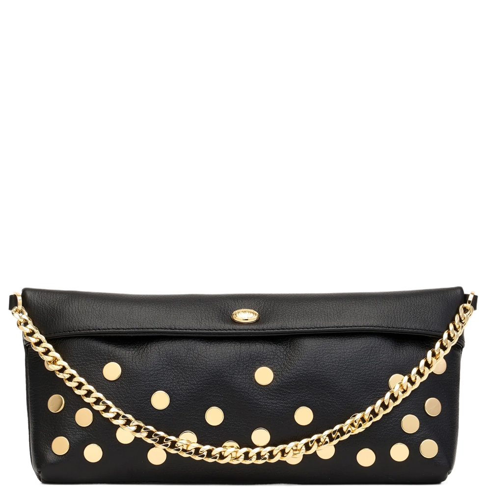 Meet the Invitation Clutch – your perfect plus-one for any event. This is the first Hammitt bag designed exclusively as a clutch, making it a must-have accessory for high-end occasions. This clutch is ideal for cocktail hours and evening events, as it features our signature metal chain strap, allowing you to wear it elegantly over your hand or draped across your forearm. This silhouette also marks the debut of our new Hammitt Droplet hardware piece, a modern update to our iconic brand logo through the lens of a single water droplet.
