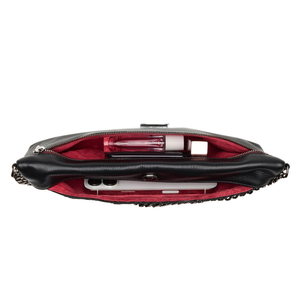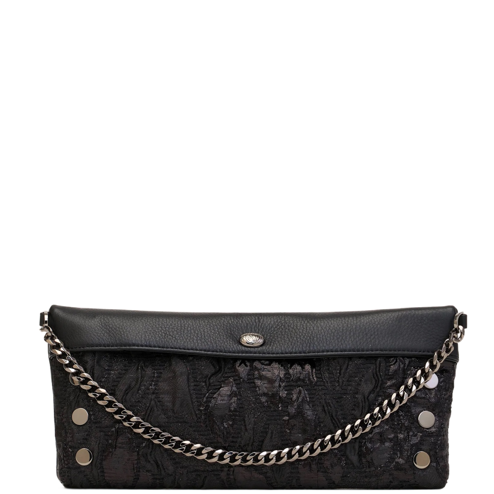 Meet the Invitation Clutch – your perfect plus-one for any event. This is the first Hammitt bag designed exclusively as a clutch, making it a must-have accessory for high-end occasions. This clutch is ideal for cocktail hours and evening events, as it features our signature metal chain strap, allowing you to wear it elegantly over your hand or draped across your forearm. This silhouette also marks the debut of our new Hammitt Droplet hardware piece, a modern update to our iconic brand logo through the lens of a single water droplet.