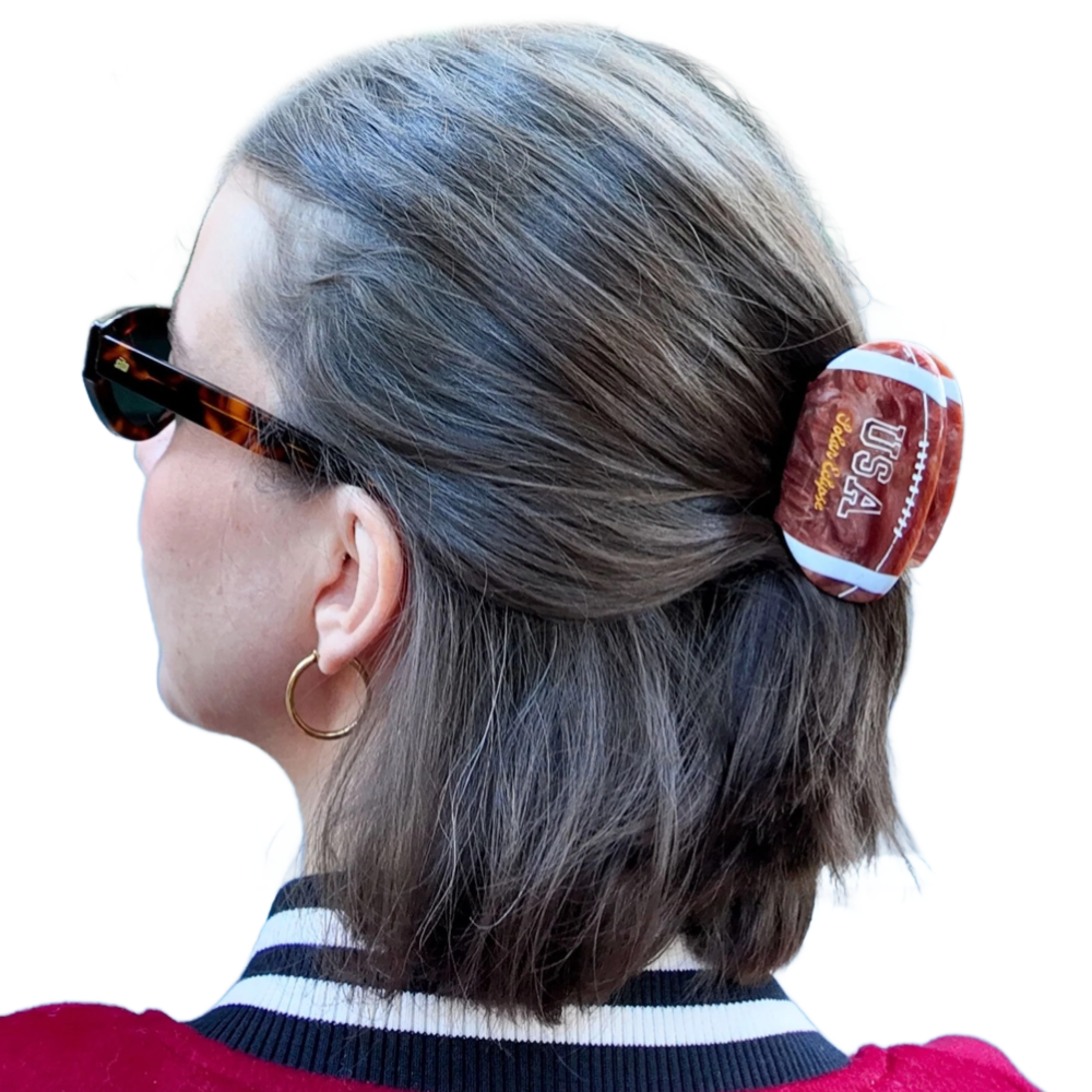 Game day just got a style upgrade. The Vintage Football Claw Hair Clip is a nostalgic nod to classic sports culture—hand-painted by our Solar Eclipse artists and crafted in small batches for fans who play by their own rules. Whether you're tailgating or just vibing in your favorite varsity jacket, this clip brings a bold, sporty touch to your look.