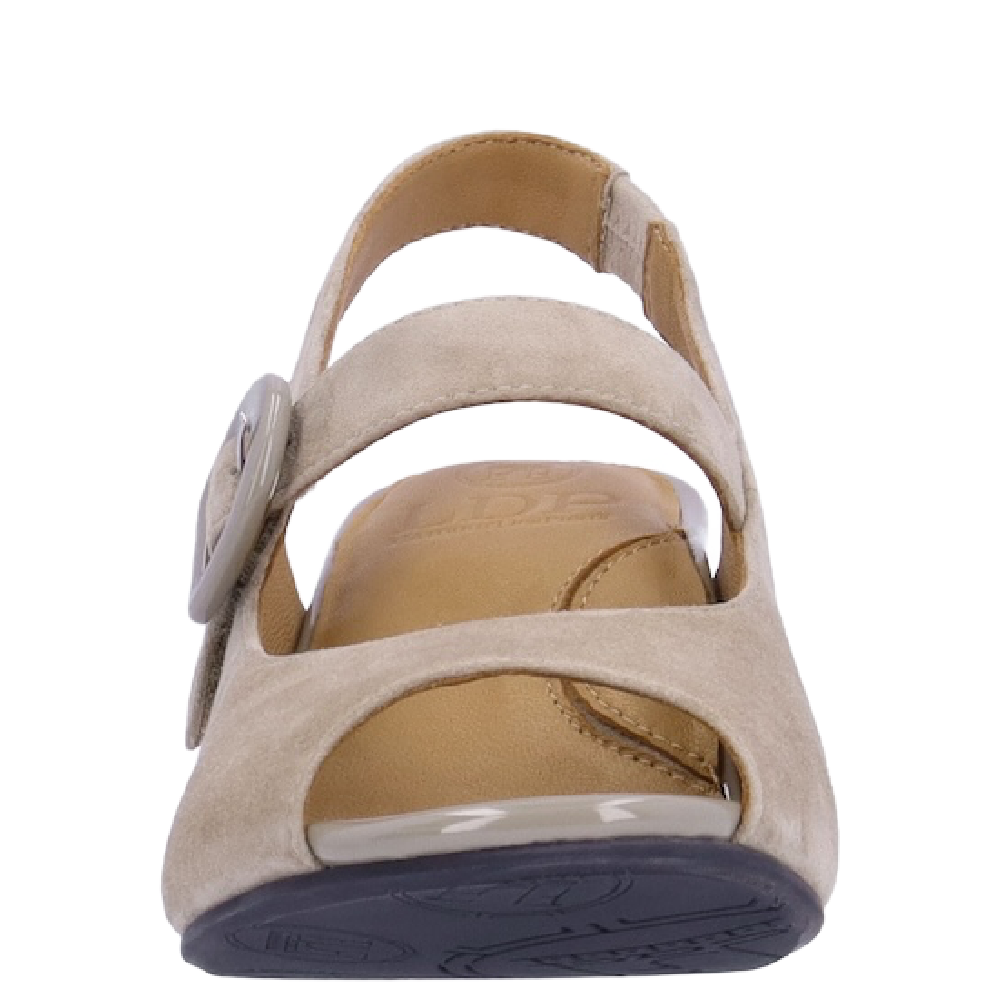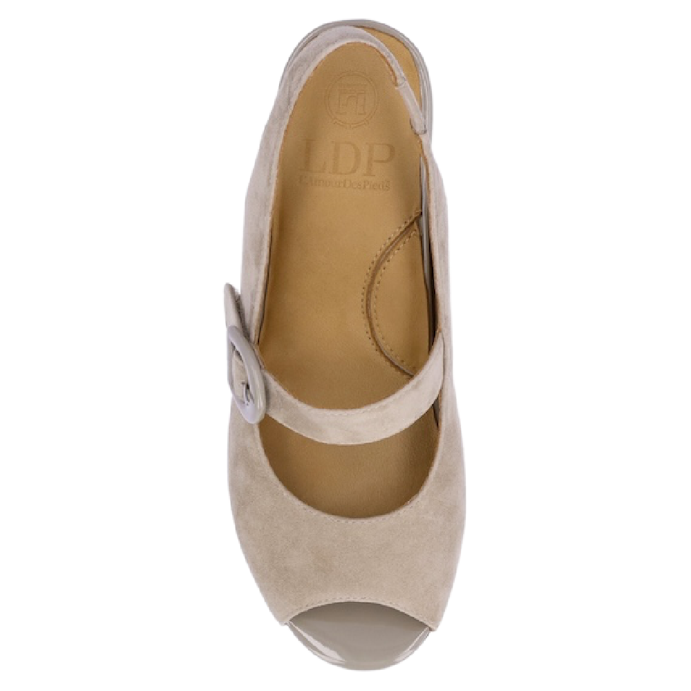 This leather pump has a round toe, memory foam insole, leather lining and synthetic outsole. This style also features a hook and loop closure on a 2.5 inch heel.