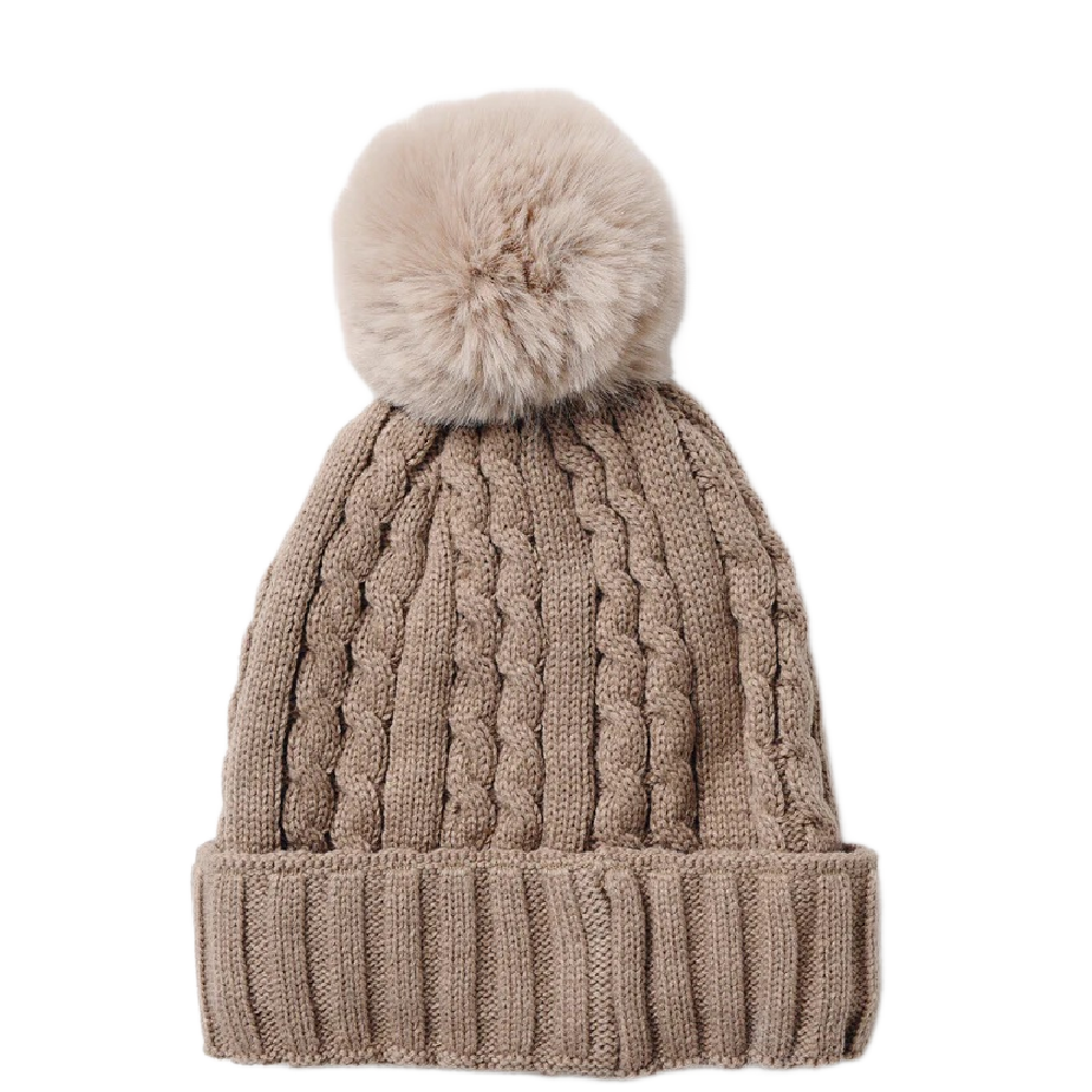 KNIT HAT WITH FOX POM