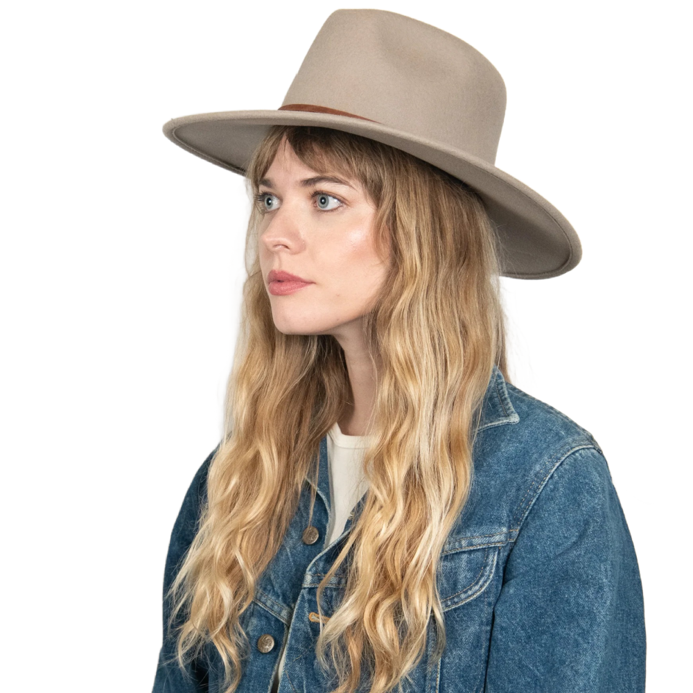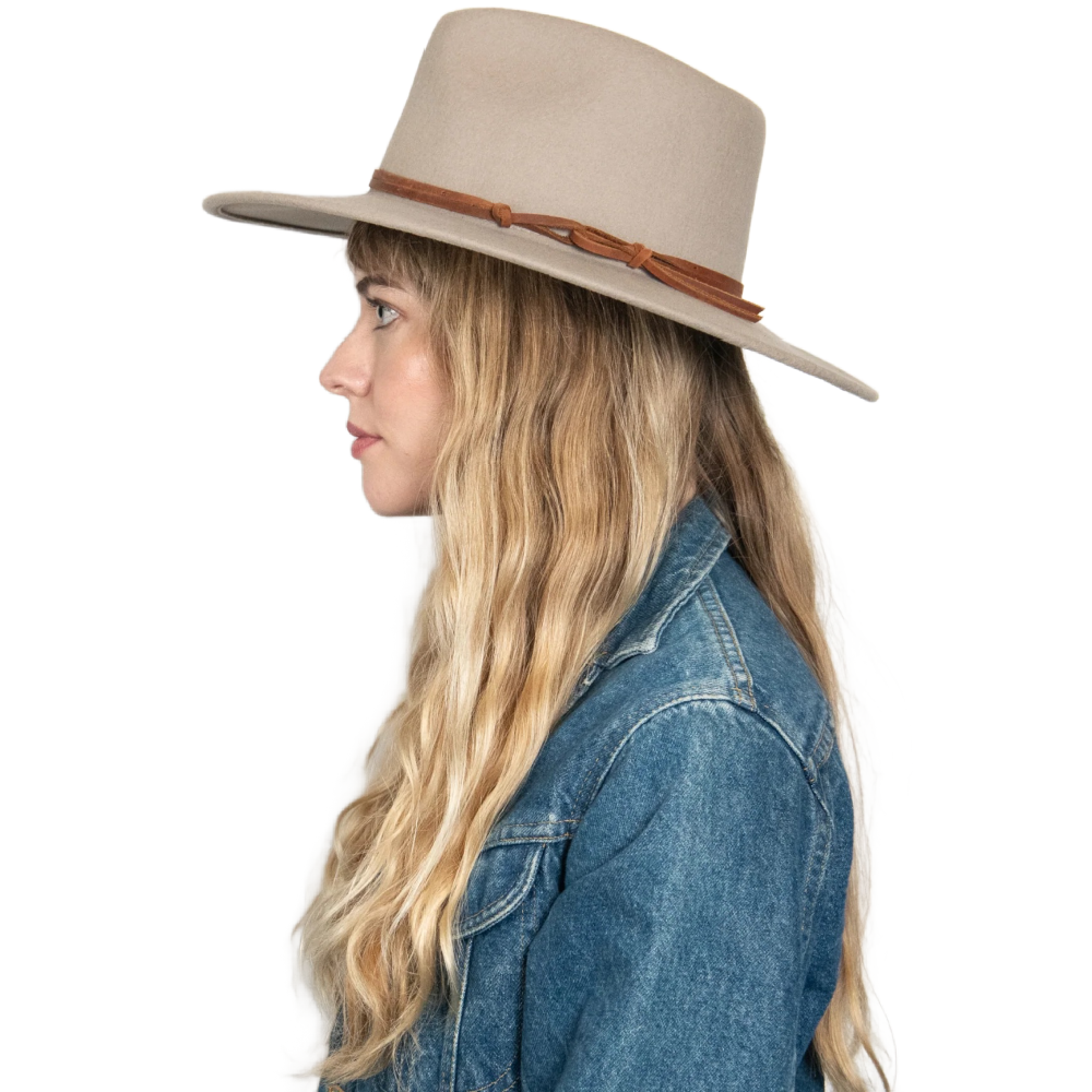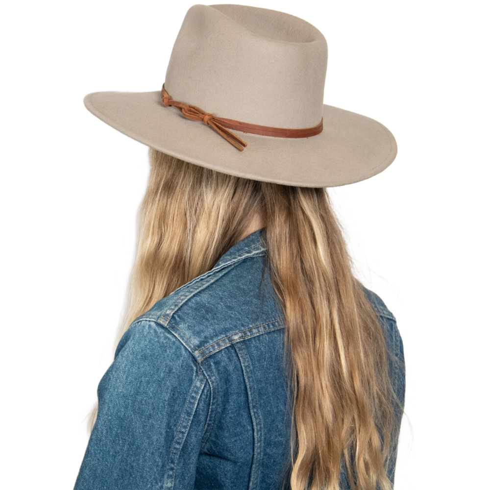 She's back! 100% Australian wool wide brim packable rancher with a genuine leather band.