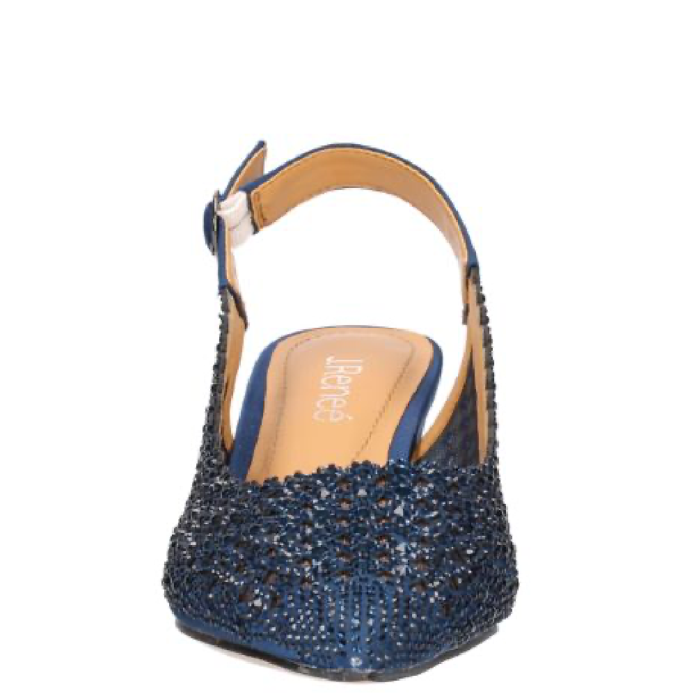 This fabric/rhinestones pump has a pointy toe, memory foam+latex insole, synthetic lining and synthetic outsole. This style also features a buckle closure on a 2 inch heel.
