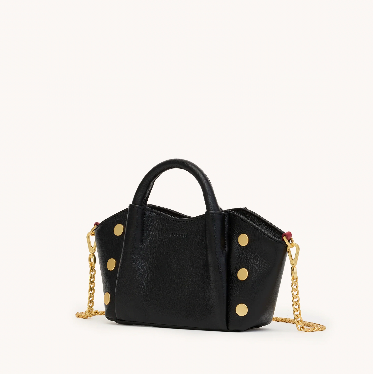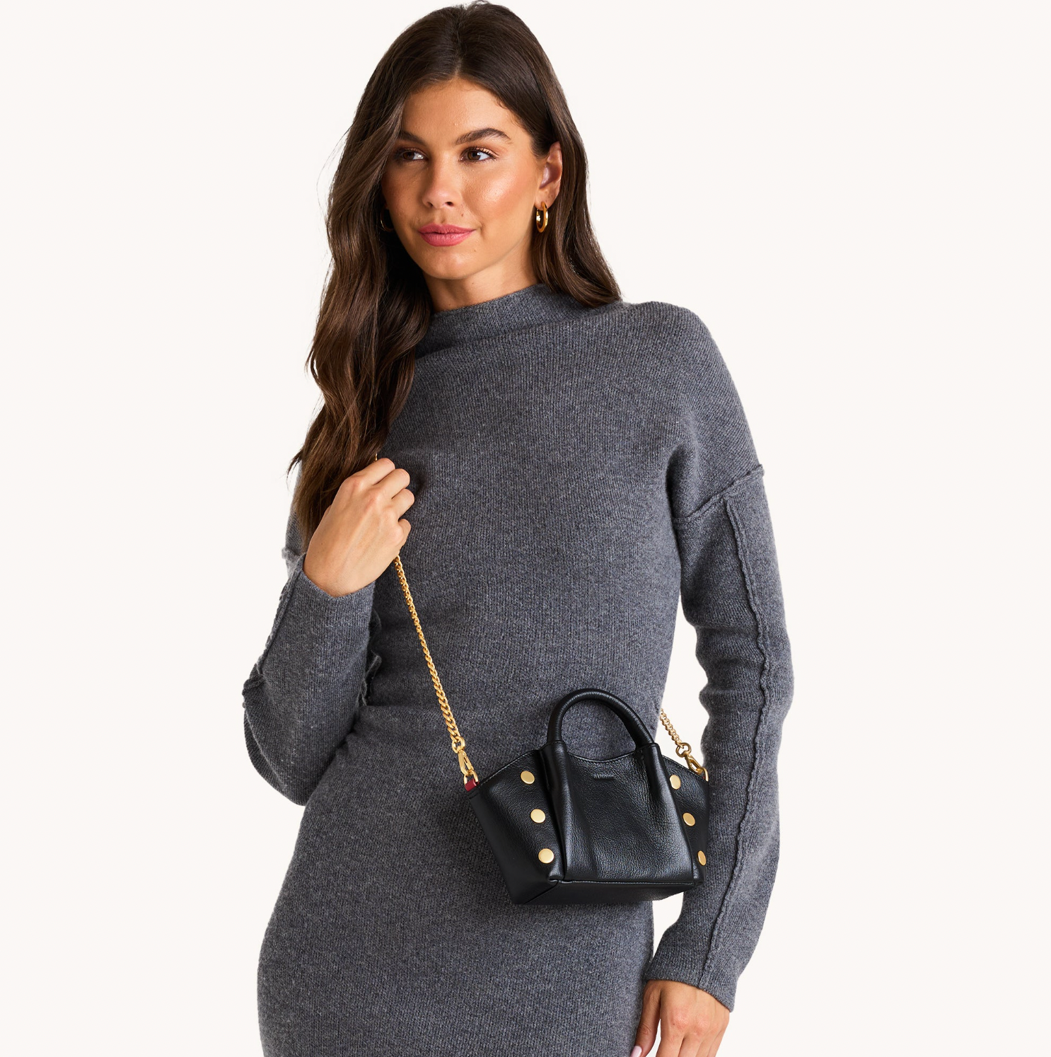 Meet Paul Mini: our newest addition to the Paul Signature Stories family. With the same iconic shape as the Paul Lrg, the Paul Mini is a compact, yet roomy, structured bag featuring a top handle and a metal crossbody chain strap. This charming crossbody is perfect for a hands-free night out and looks just as cute with the strap removed and held by the handle.