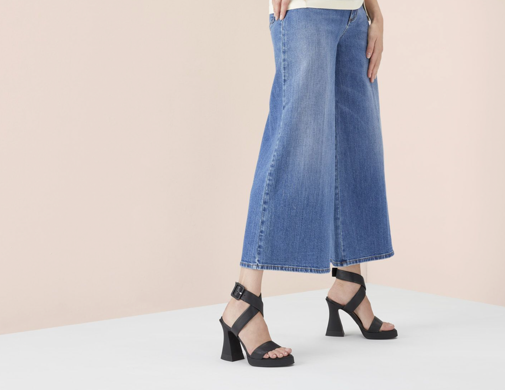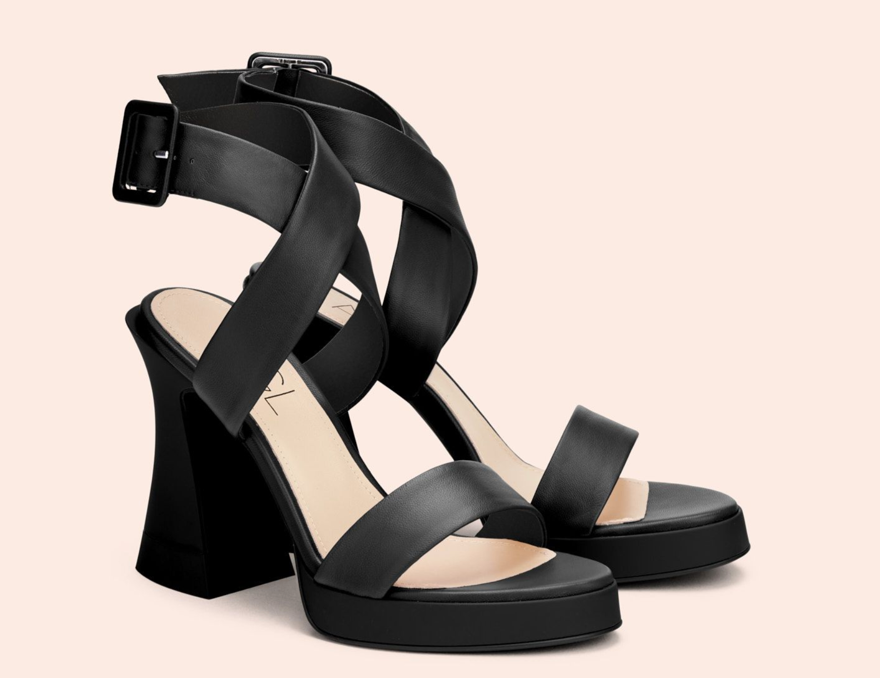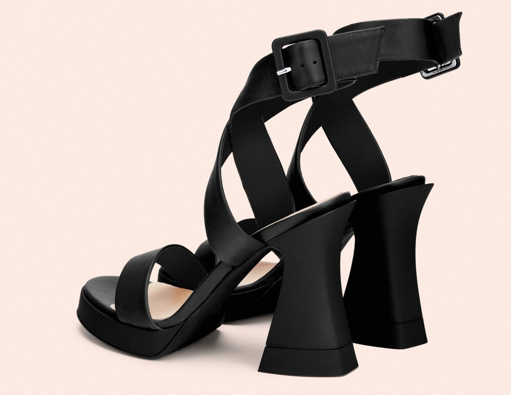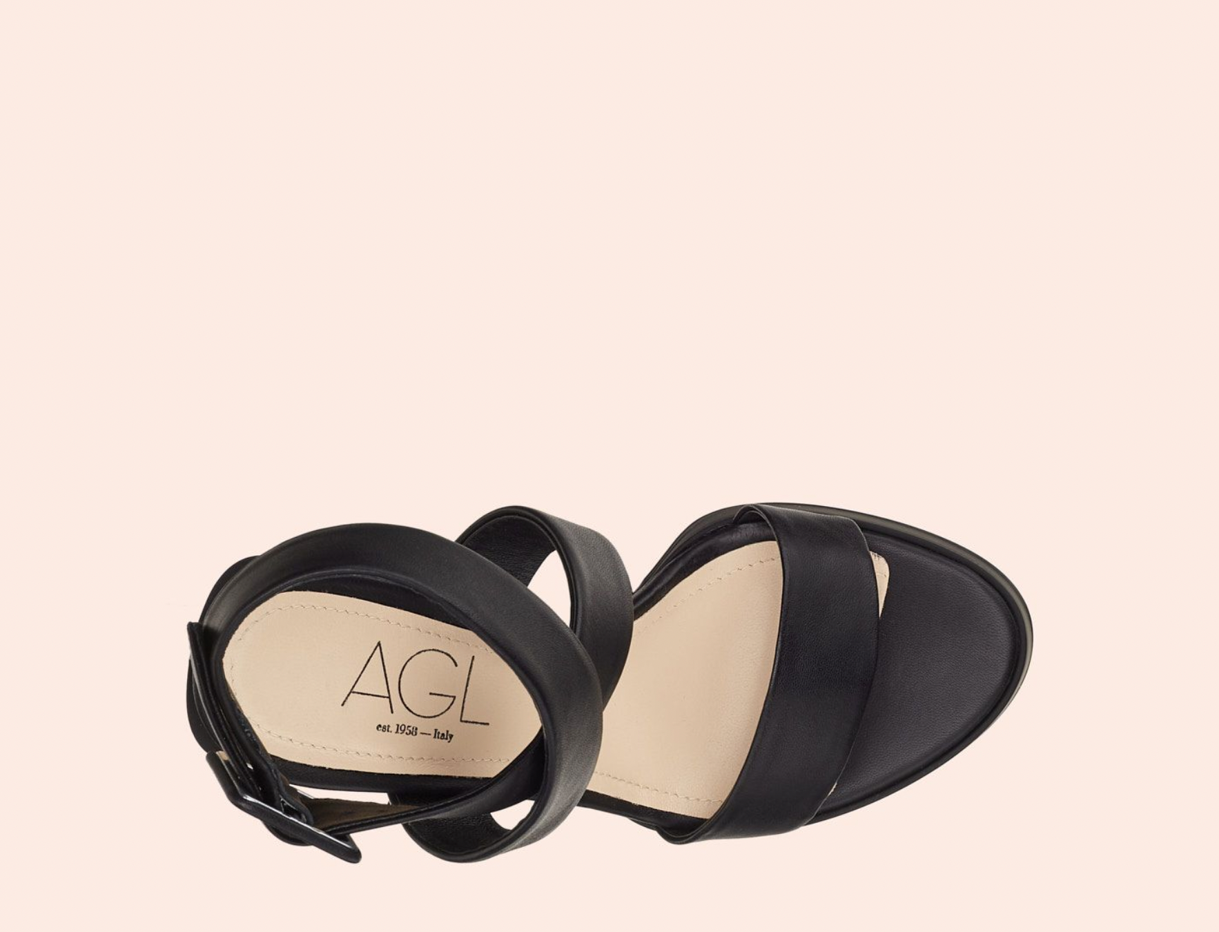 A leather sandal with crossover straps at the ankle, JANIS is the embodiment of AGL workshop experimentation, modernity, and the Giusti sisters' taste for art and beauty. Elements that converge in this sculptural creation with minimalist lines and a new heel with a shaped profile that lends height and grandeur, but also playfulness and a contemporary spirit, to this creation designed and made in Italy.