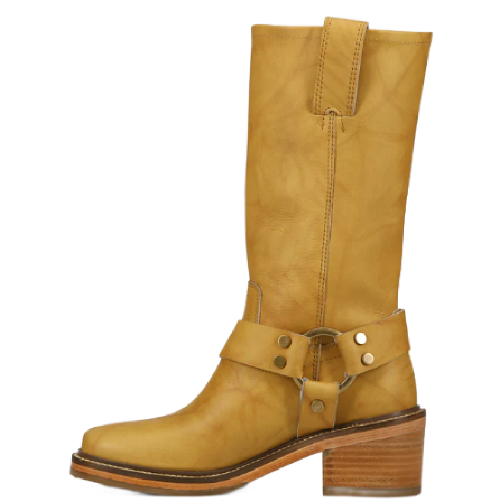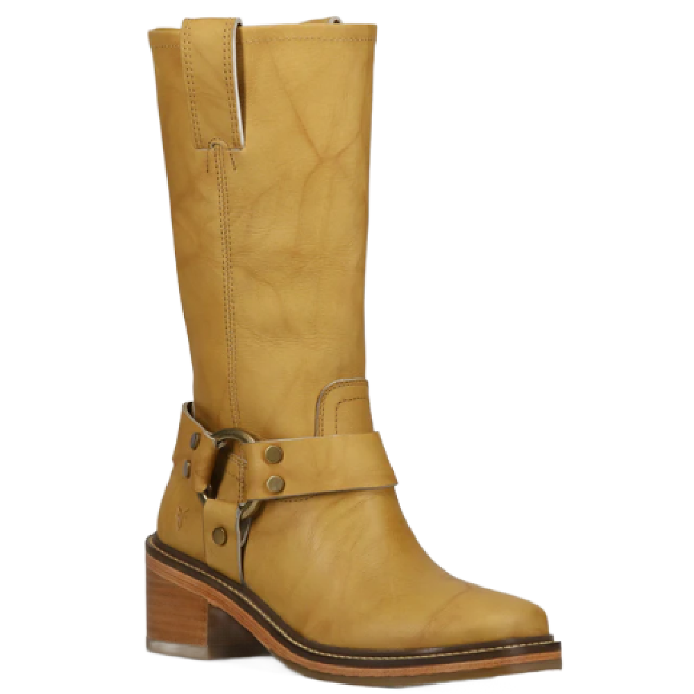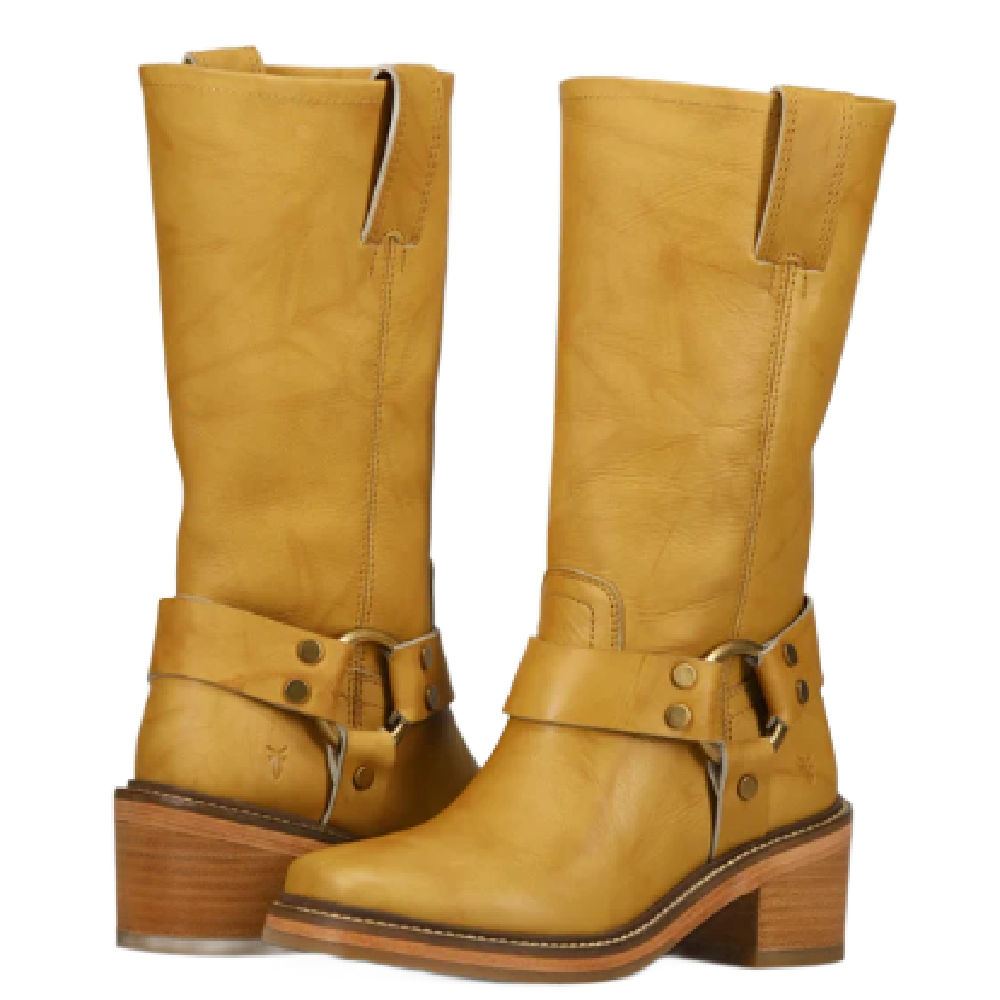 Enjoy our adaptation of the beloved Kate Pull On with the Kate Harness boot, featuring the signature Frye harness detail - a nod to the brand's iconic heritage. With its rounded toe and paired with a cushioned footbed and rubber outsole, the versatile 2-inch block heel is easy to walk in, while providing a flattering lift to any look. Available in versatile shades, these boots seamlessly pair with your favorite denim shorts or midi dresses.