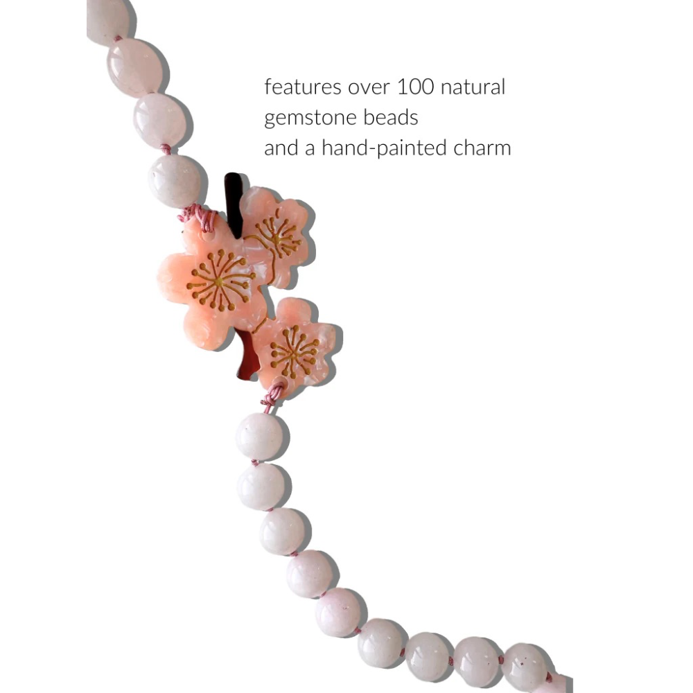 crafted by our solar eclipse artisans, our phone chains are handmade and hand-painted. each chain features over 100 natural gemstone beads and our iconic hand-painted cherry blossom charm.