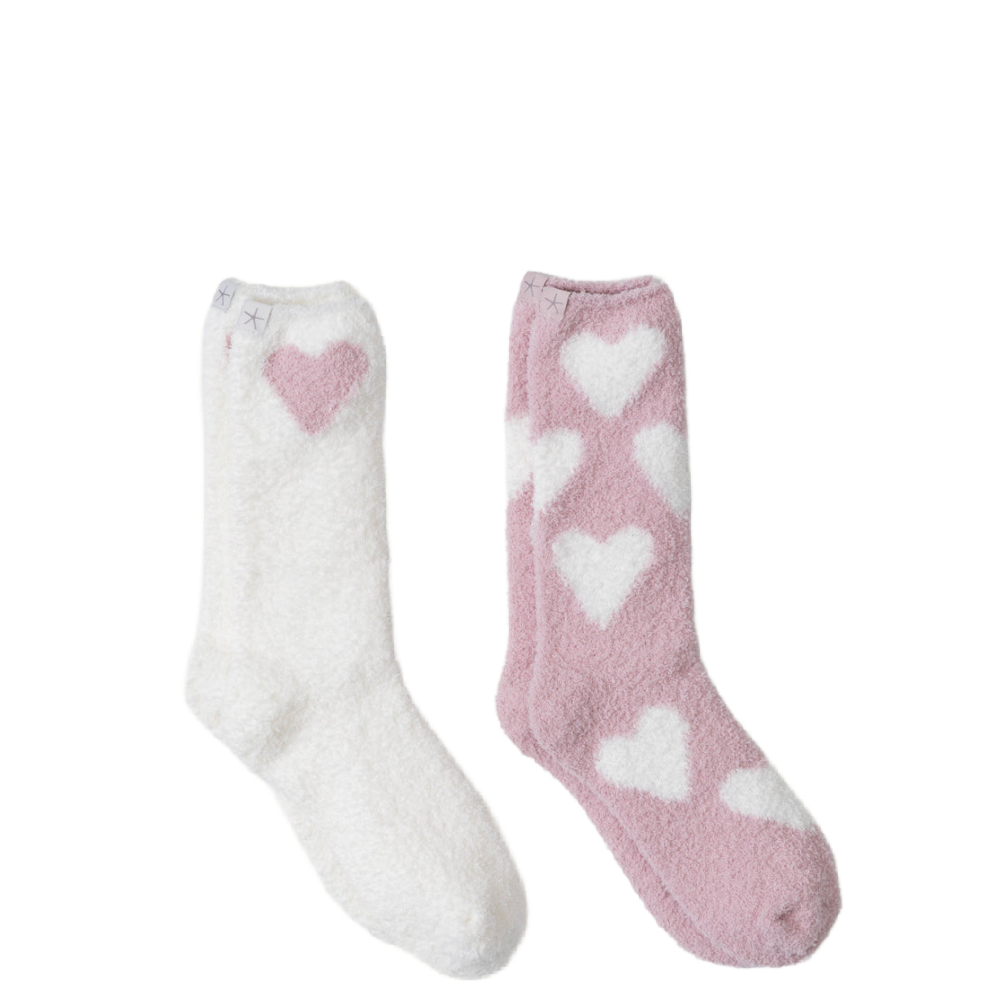 Stay cozy and stylish with our CozyChic® Heart Print Sock Set. This set includes two pairs of socks, one with an all-over heart print and the other with a single heart at the outer leg opening. Made with our soft and luxurious CozyChic® fabric, these socks will keep your feet cozy and add a touch of charm to your outfit. Imported.