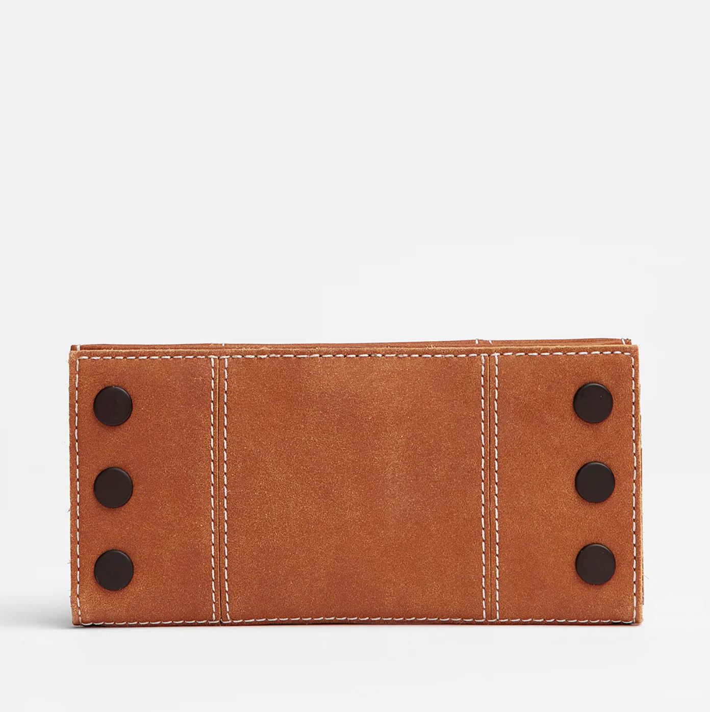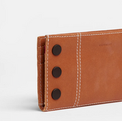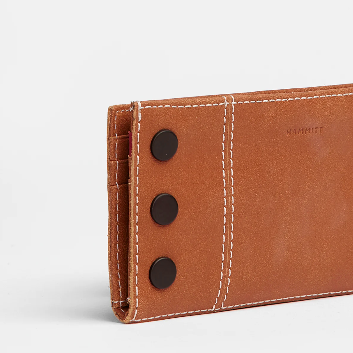 You can't cruise through DTLA without the 110 North. That's why we named our essential folding wallet after LA's fan-favorite freeway. This organizer's dream features 10 credit card slots, a clear ID pocket, zippered pocket and two drop pockets to hold cash. Cha-ching. With hints of golden red undertones, this essential dark brown leather has returned with an upgraded feel. Complete with a slightly more finished surface, this new take on Saddle leather is more durable and ready to take on horsing around of all sorts.
