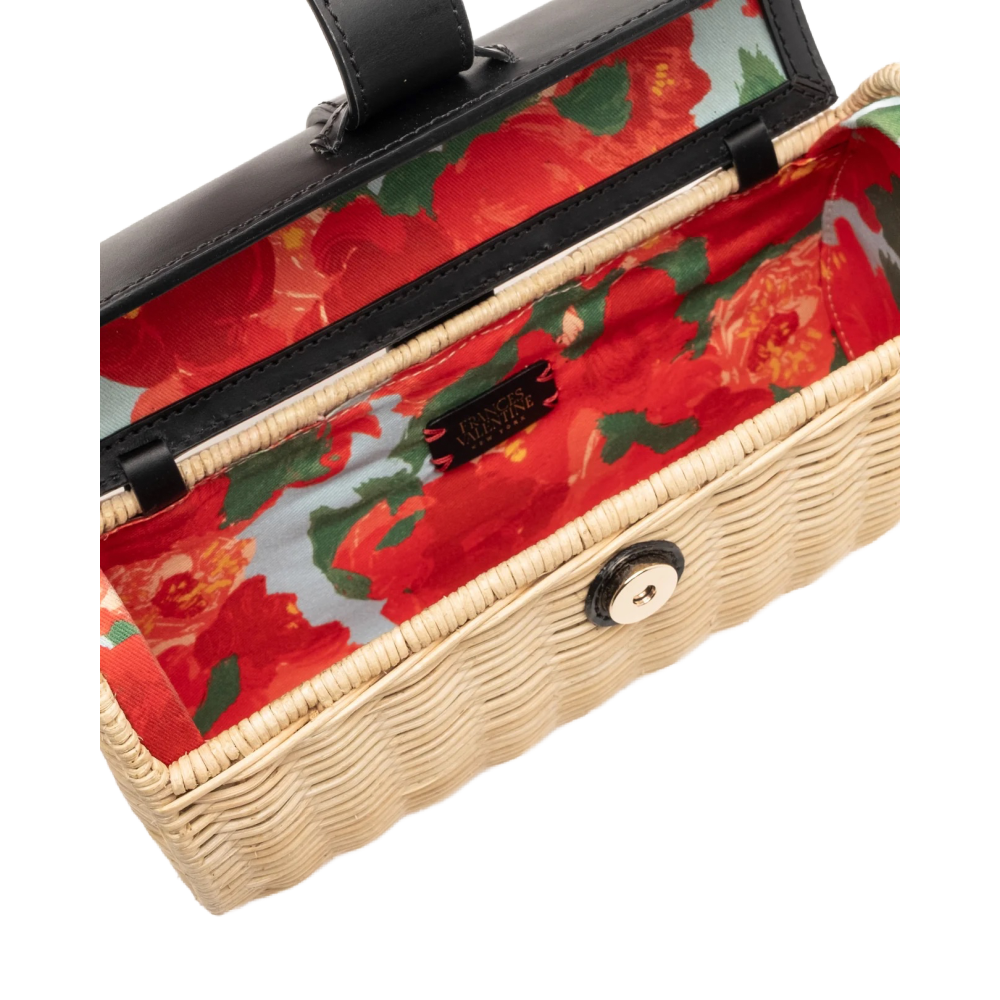 Whether you’re strolling through a spring market or attending an outdoor brunch, this clutch is the perfect spring accessory. Crafted by hand from natural woven wicker with Vachetta leather trim, the FV Peony Print lining keeps your essentials stylishly in place. A versatile design, it transitions from a crossbody to a clutch with ease.