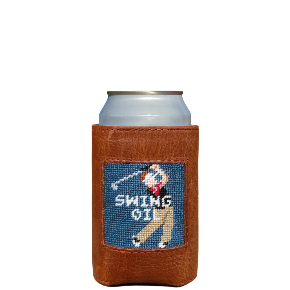 Our can coolers combine our signature 100% hand-stitched needlepoint with an Italian, full grain leather exterior and a neoprene liner. Our attractive can coolers will keep you and your drink cool. Can you dress your drink up any better?