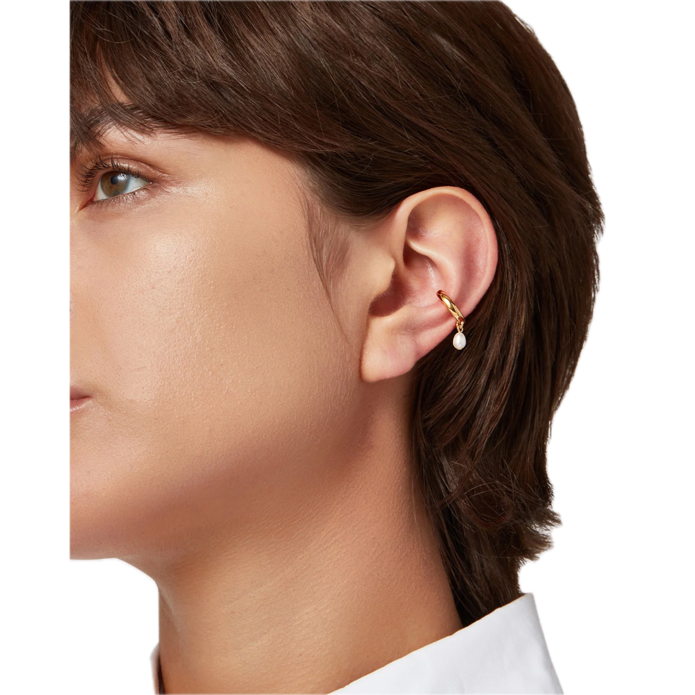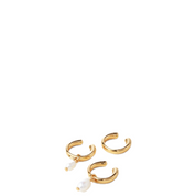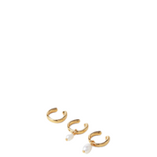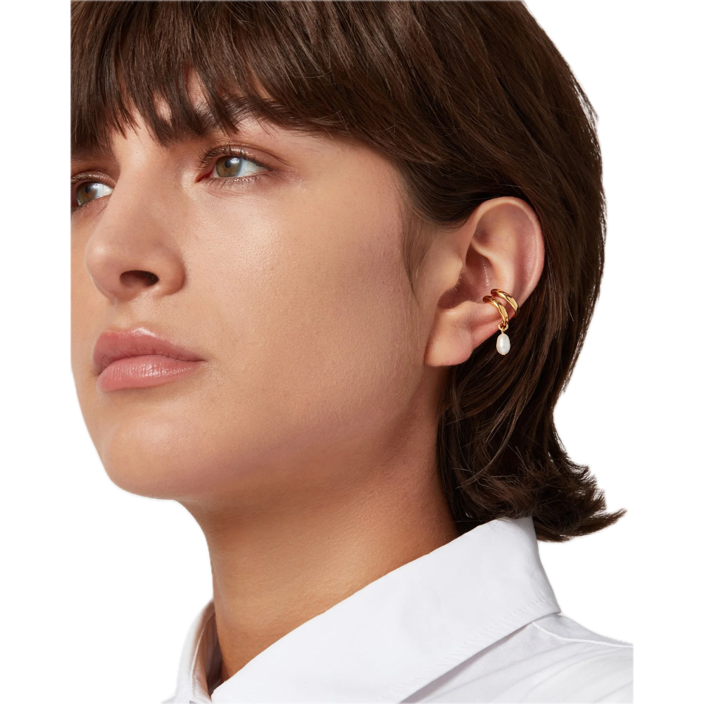 A set of three ear cuffs featuring one single gold ear cuff and two with freshwater pearls. Organic and hand formed, these cuffs are malleable and designed to be opened up or squeezed tight to fit your ear shape. Finished in high-polish gold.