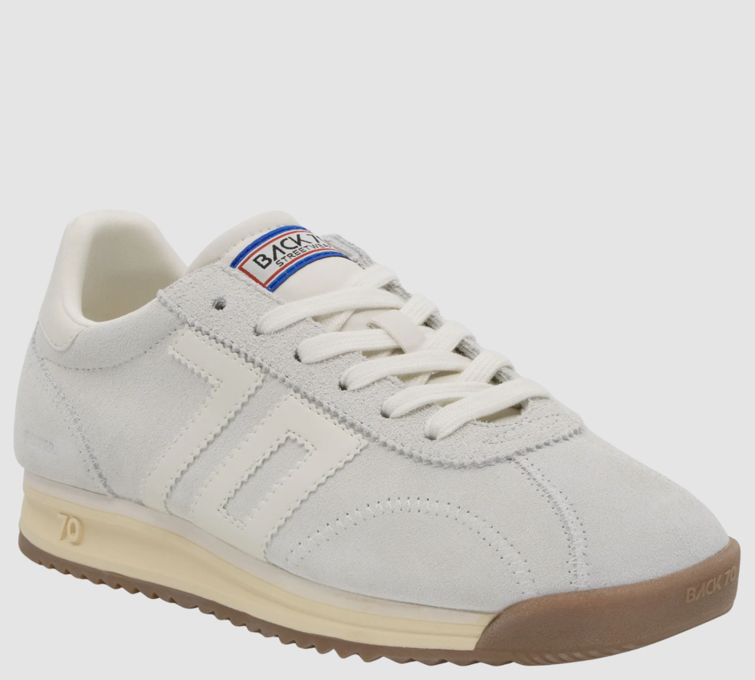 Lightness engineered for movement, Runner is a well balanced sneaker that blends form and function. Fluid design and an uplifting energy are shaped with cocooning, modular structures and abstract shapes found embedded within a calming, monochrome palette. Hand crafted in exceptional quality materials, this style elevates organic casual wear and utility basics, unearthing an authentic softness that echoes complexity and dimension. Featuring a lightly elevated sole, Back 70¿s heritage label and signature emblem.