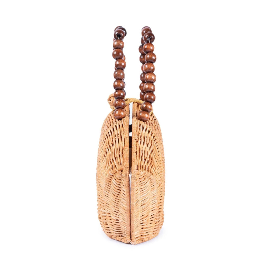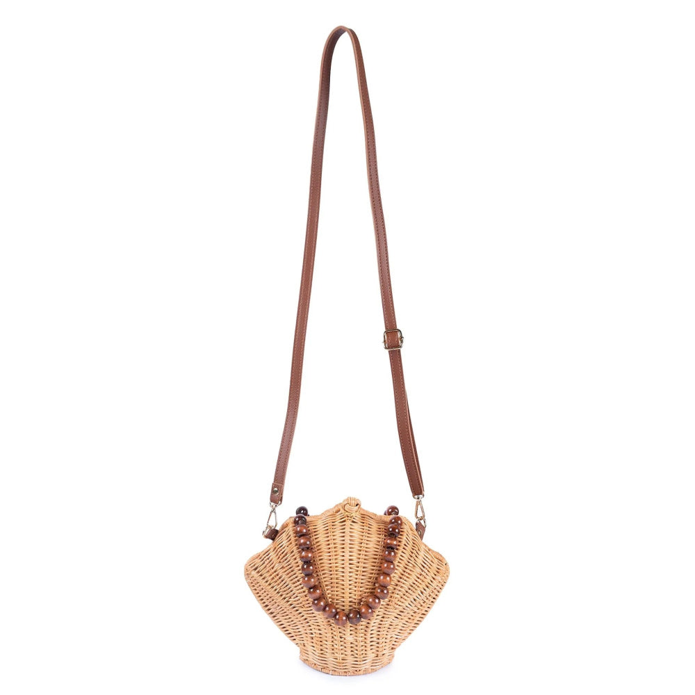 Introducing the Shelly Wood Bead, a masterfully crafted accessory that captures the allure of coastal beauty. The seashell-shaped silhouette, intricately woven with precision, radiates a sense of natural elegance. The wooden beaded handle, adorned with carefully selected beads, not only adds rustic charm but also ensures a comfortable and stylish grip. This exquisite bag transcends the ordinary with its detachable crossbody strap, offering the versatility to switch between handheld sophistication and hands-free convenience. Perfect for beach escapes, summer soirees, or everyday outings, the Shelly is a testament to distinctive craftsmanship, making a timeless statement for those who appreciate both form and function.