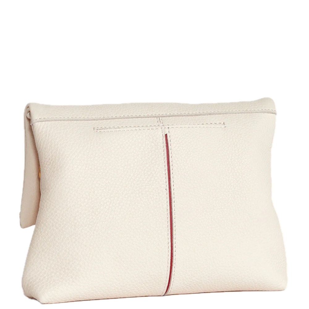 Because you're a VIP. Our all-time best-seller, this VIP clutch features an optional strap and subtle embossed rivets. From two zippered pockets to a credit card slot, two interior drop pockets, and an exterior phone pocket, this bag was designed with intention and organization in mind. Plus, you'll find a subtle strip of red peeking out along the bag's back seam. Crafted with off-white pebbled leather.