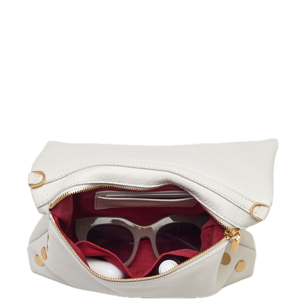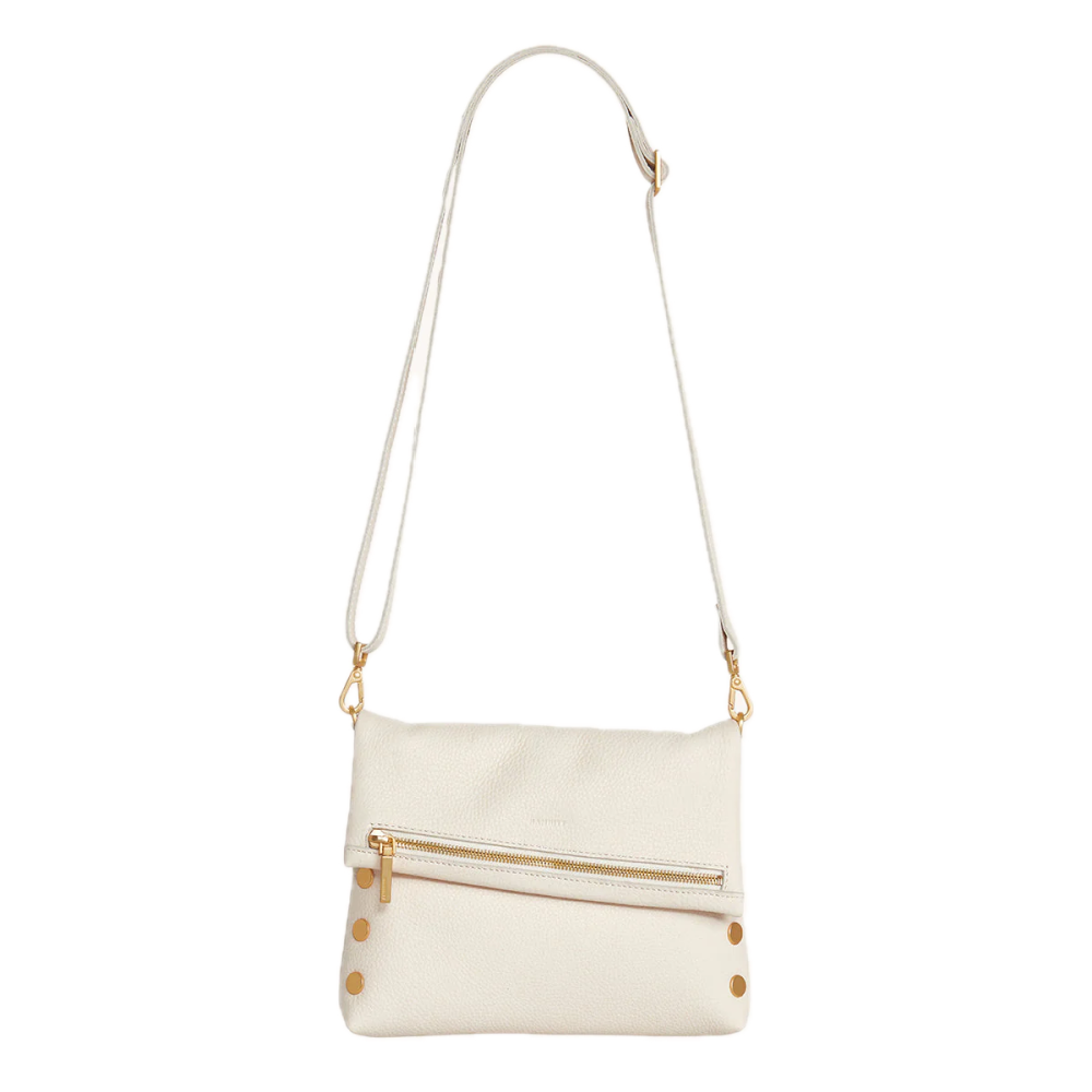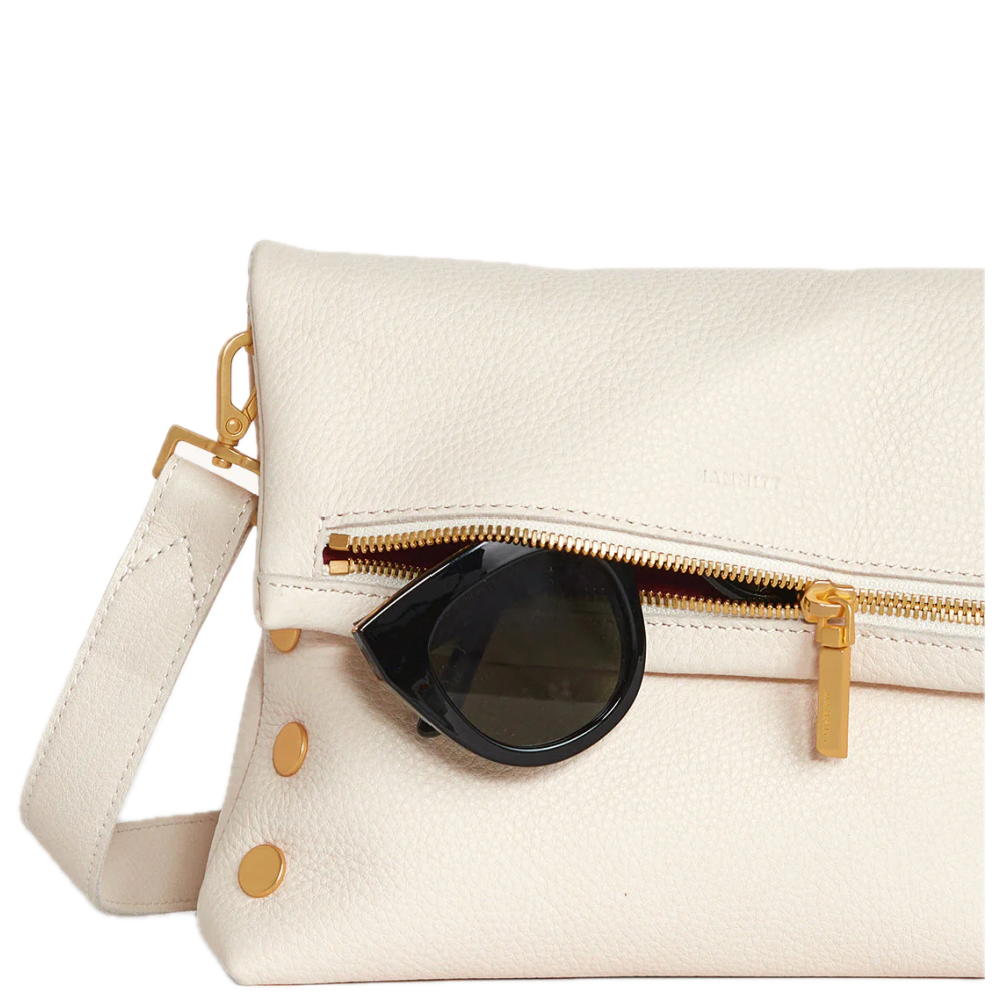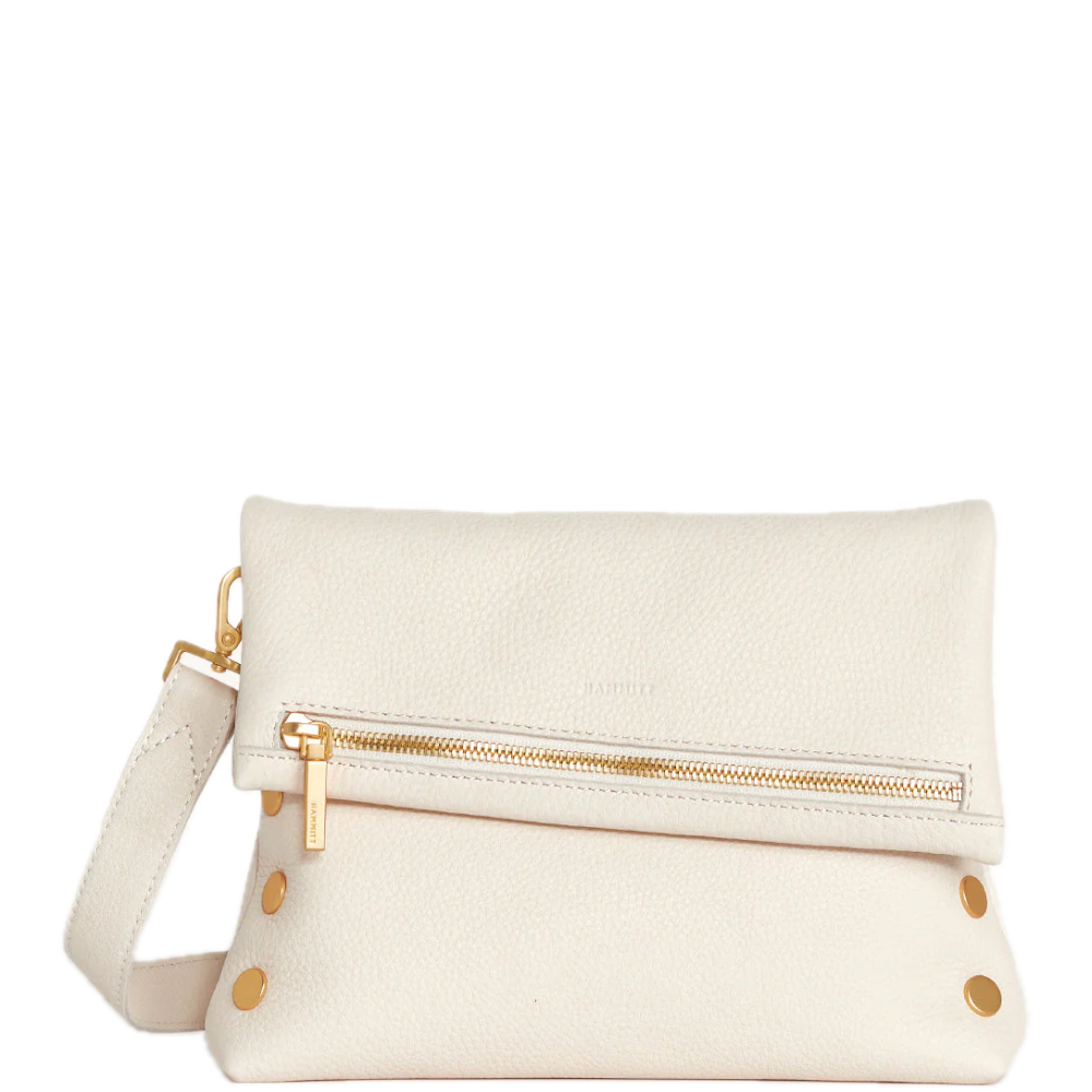 - Crafted with classic pebbled leather in a warm white hue